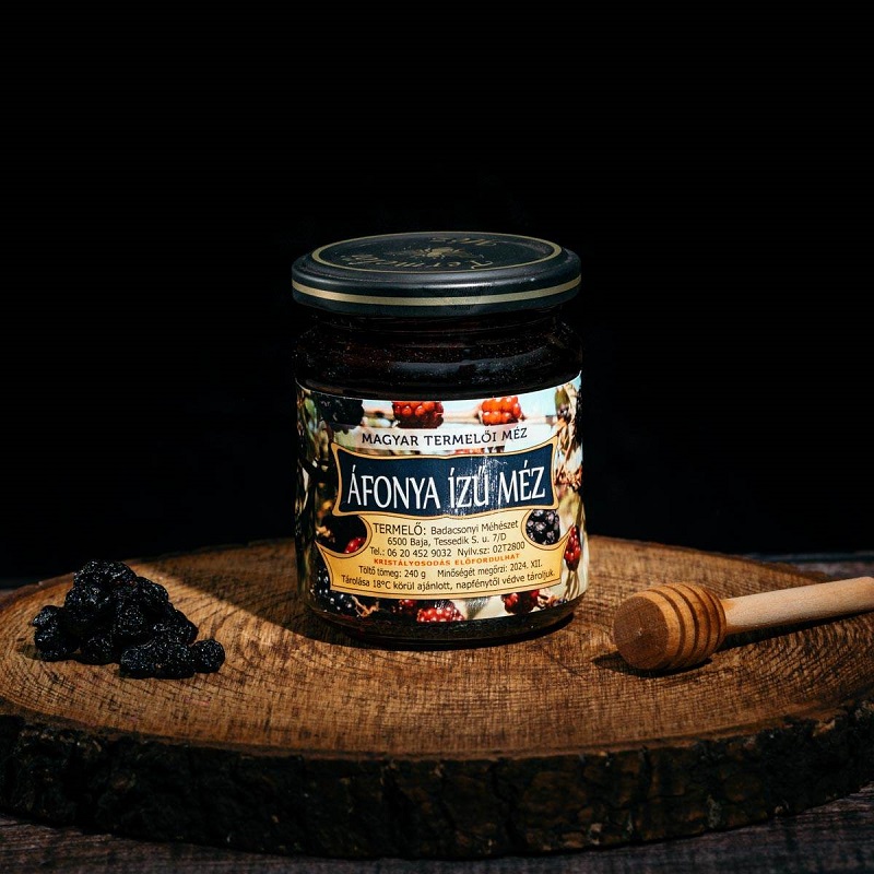 Összetevők: termelői akác méz, aszalt áfonya, 100 % ban természetes áfonya szirup
